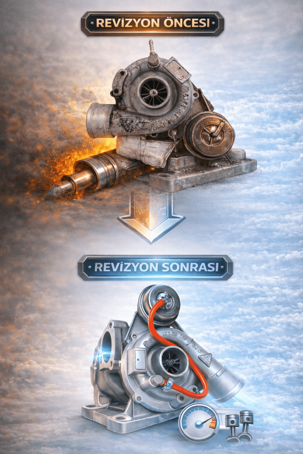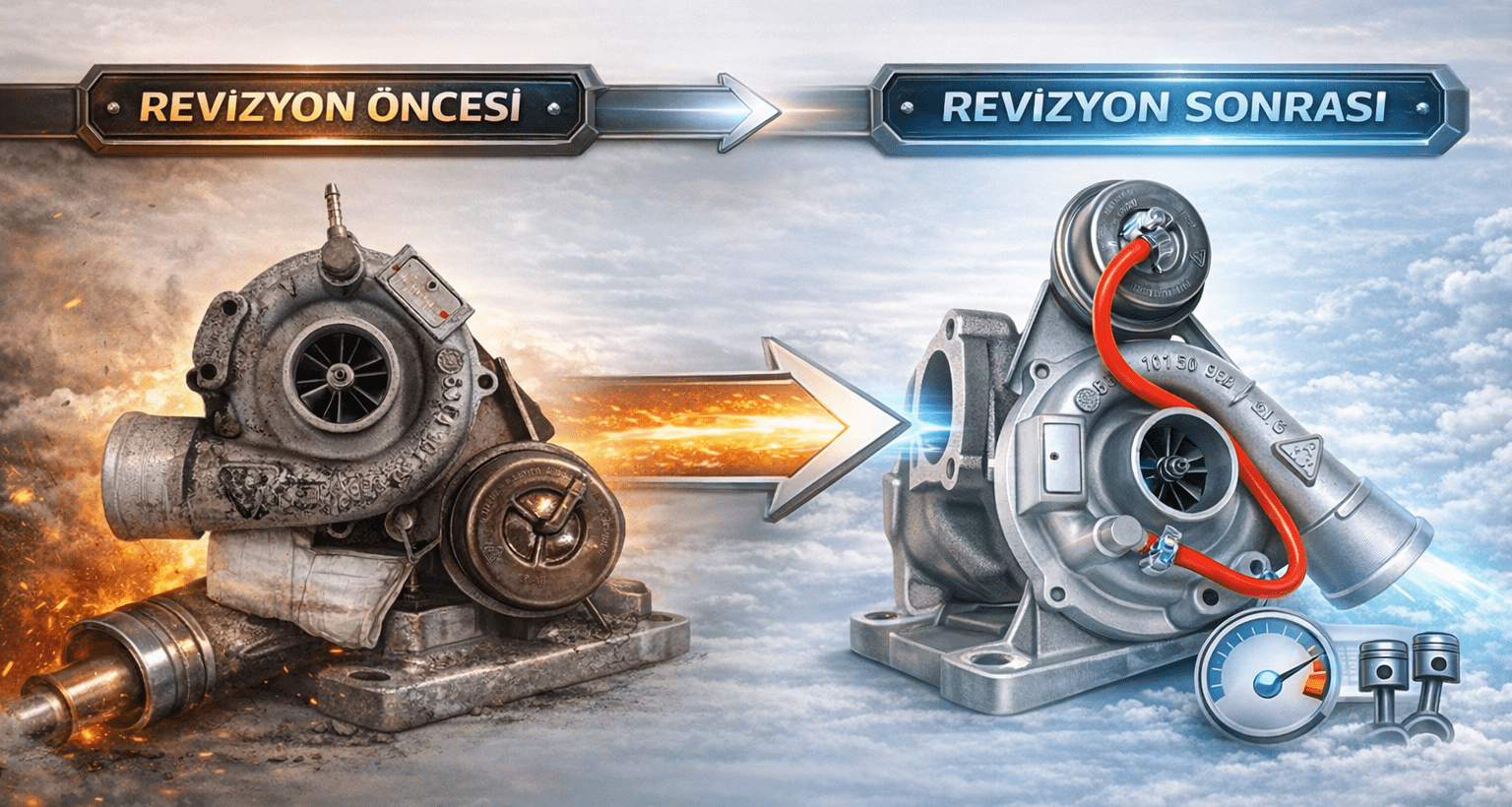 Revizyon ile tüm aşınmış parçalar yenilenir ve turbo tekrar sağlıklı çalışır.